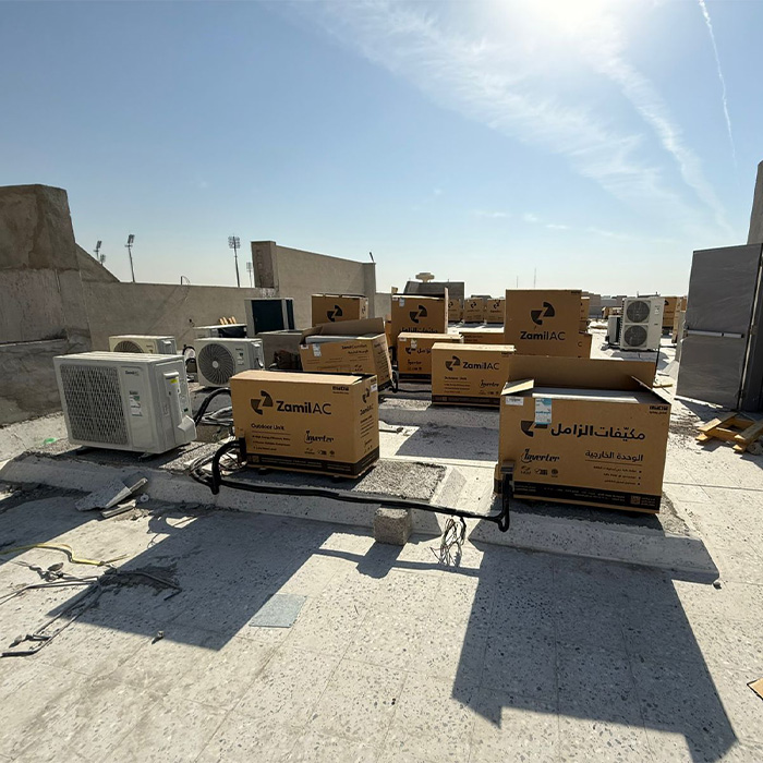 Supply and installation of a central (concealed) air conditioning system for the Red Crescent building in Buraidah, including the supply and installation of air ducts and all copper piping.